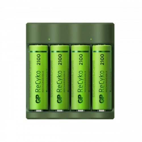 Deze veelzijdige oplader werkt via USB of een GP ReCyko laadstation (speciaal ontwikkeld voor de GP ReCyko laders B421 en M451). 4 oplaadbare AA batterijen van 2100mAh zijn bijgesloten voor een optimale laadoplossing.