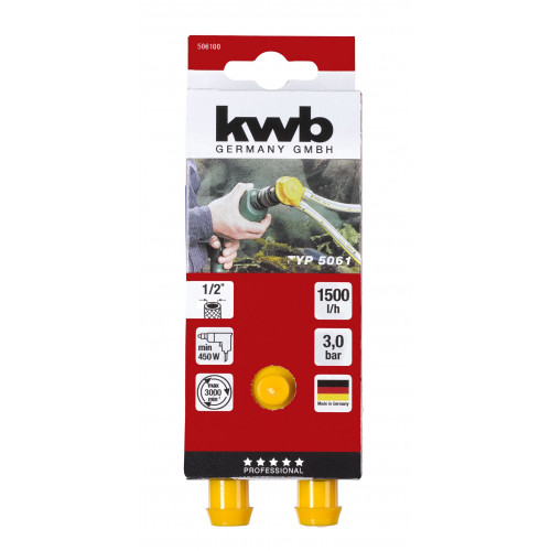 kwb Minipomp P61 -- Mini-pomp P61, zelfaanzuigend, voor boormachines, slangaansluiting 1/2" voor bevestiging met slangklemmen, voor het over- en wegpompen van vloeistoffen, bijv. het leegmaken van regentonnen of kinderzwembaden.