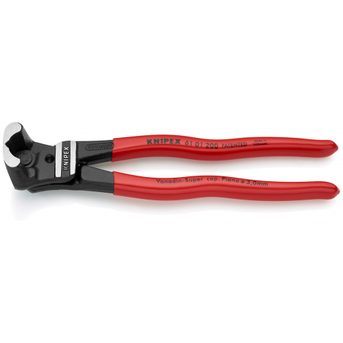 Grotere capaciteit, grotere krachtoverbrenging en betere hantering in vergelijking met gewone hefboomvoorsnijtangen. Met snijkanten voor zachte, harde draad en pianodraad. Bijzonder hoge snijcapaciteit bij lage krachtinspanning dankzij de optimale krachtoverbrenging. Snijkanten extra inductief gehard, hardheid van de snijkanten ca. 64 HRC. Gesmeed. Vanadium elektrostaal, in olie gehard en getemperd