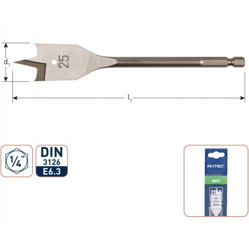 Speedboor, met 1/4" bit-aansluiting, geslepen, gehard, met spaanbreker. Zeskant schacht voorkomt slippen in de boorkop.