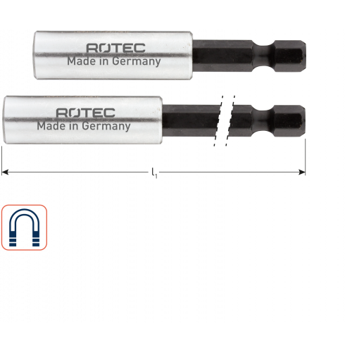 Magn. bithouder E 6,3 x 60mm, met C-ring. Verpakt in kleinverpakking.